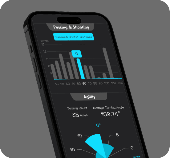 Our cutting-edge wearable sensor features advanced motion capture and intelligent behavior analysis technology, powered by deep learning algorithms. It precisely captures and analyzes foot-to-ball interactions during your play.