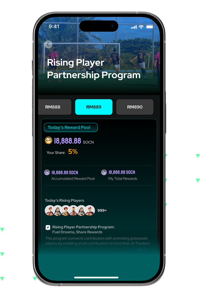 Back promising players through pooled contributions that fund AI Trackers. Share in their performance rewards and card royalties as they play and grow.